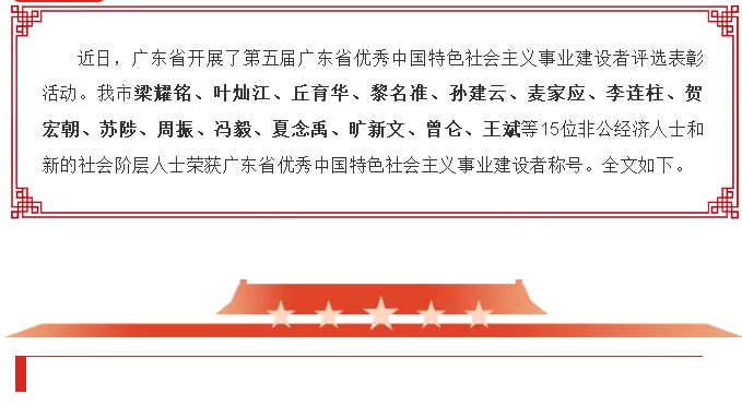 【喜讯】广州市15位非公经济人士和新的社会阶层人士荣获第五届广东省优秀中国特色社会主义事业建设者称号